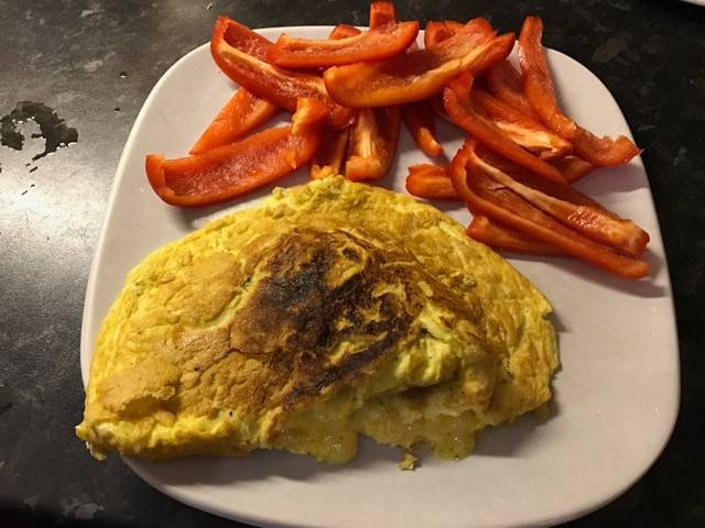 Cheese omelette and two red peppers. #quickdinner Yes I did burn the omlette?